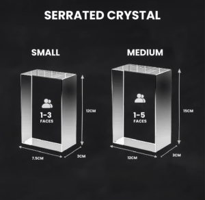 Select the perfect size for your exquisite 3D Crystal. Keep in mind our recommended number of faces per size for the best results.